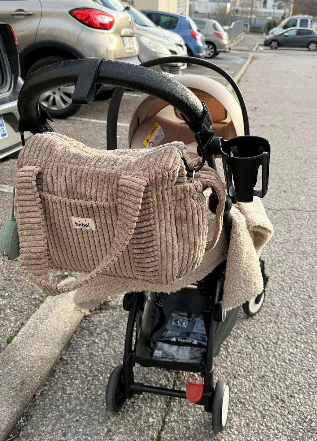 Positionnable sur la poussette grâce à sa bandoulière réglable ou aux attaches poussette, il vous accompagnera dans tous vos déplacements.