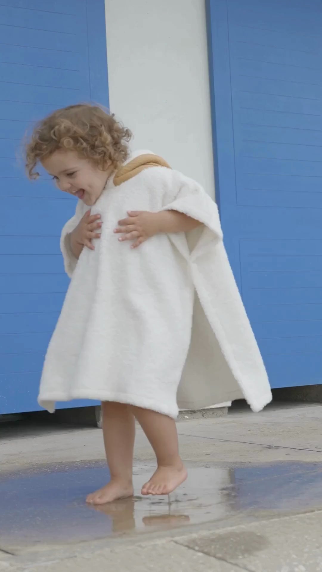 Le poncho de bain Bebel doux et moelleux pour venir sécher et réchauffer à la sortie du bain , de la plage , de la piscine ...