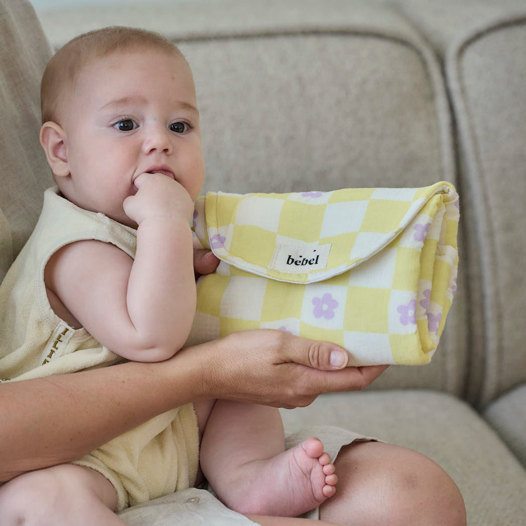 bebel a imaginé un matelas à langer esthétique et pratique vous permettant de changer votre bébé partout facilement, et de le nettoyer en un coup d'eau ou de lingette grâce à son tissu totalement imperméable 100% Oeko-Tex !