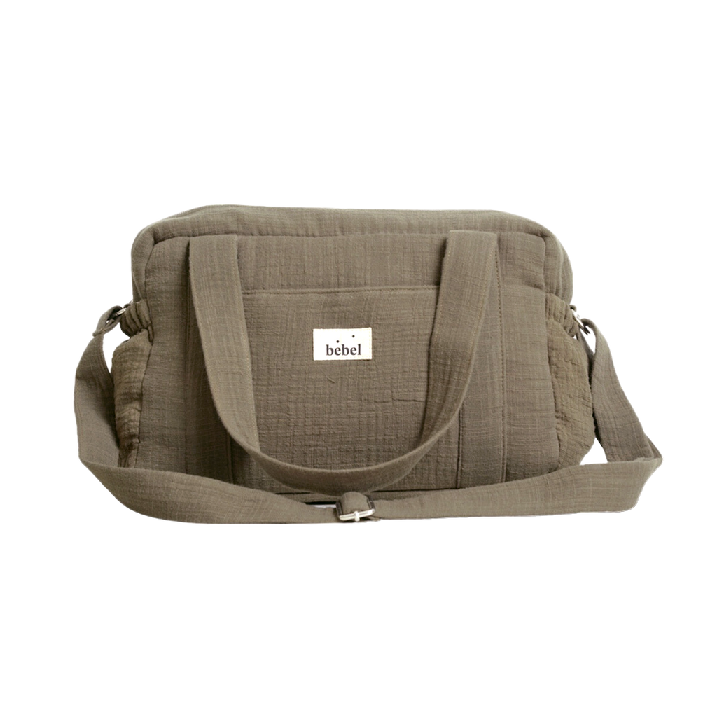 L'intérieur du sac, totalement imperméable, est composé de 2 poches plaquées et 2 poches à biberon et à l'extérieur 3 poches supplémentaires (2 poches élastiques sur les cotés et 1 poche à l'avant).